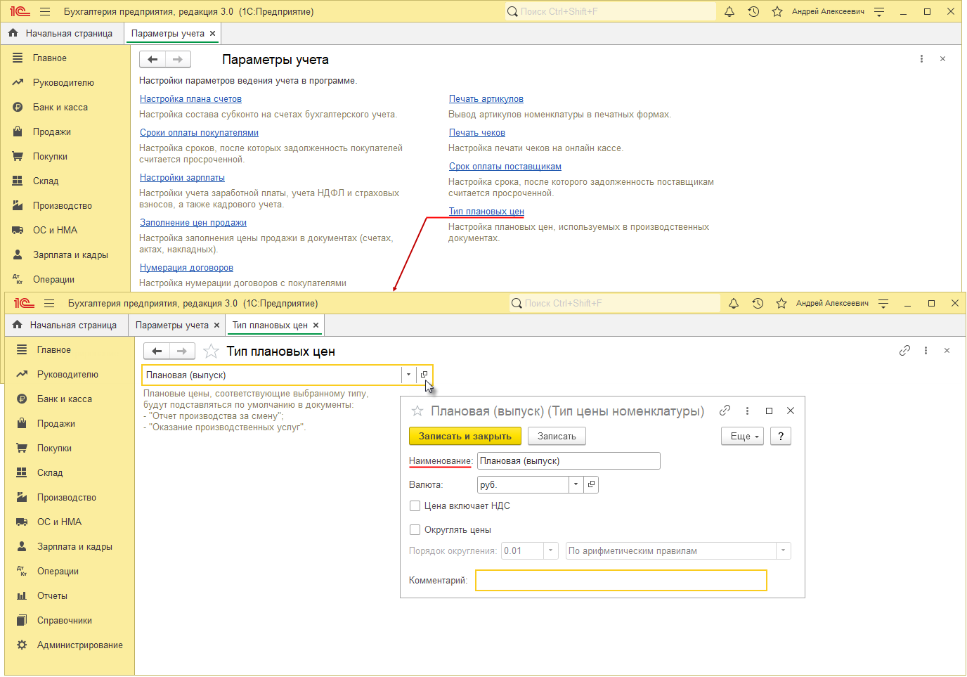 - Перейдите по ссылке «Тип плановых цен».