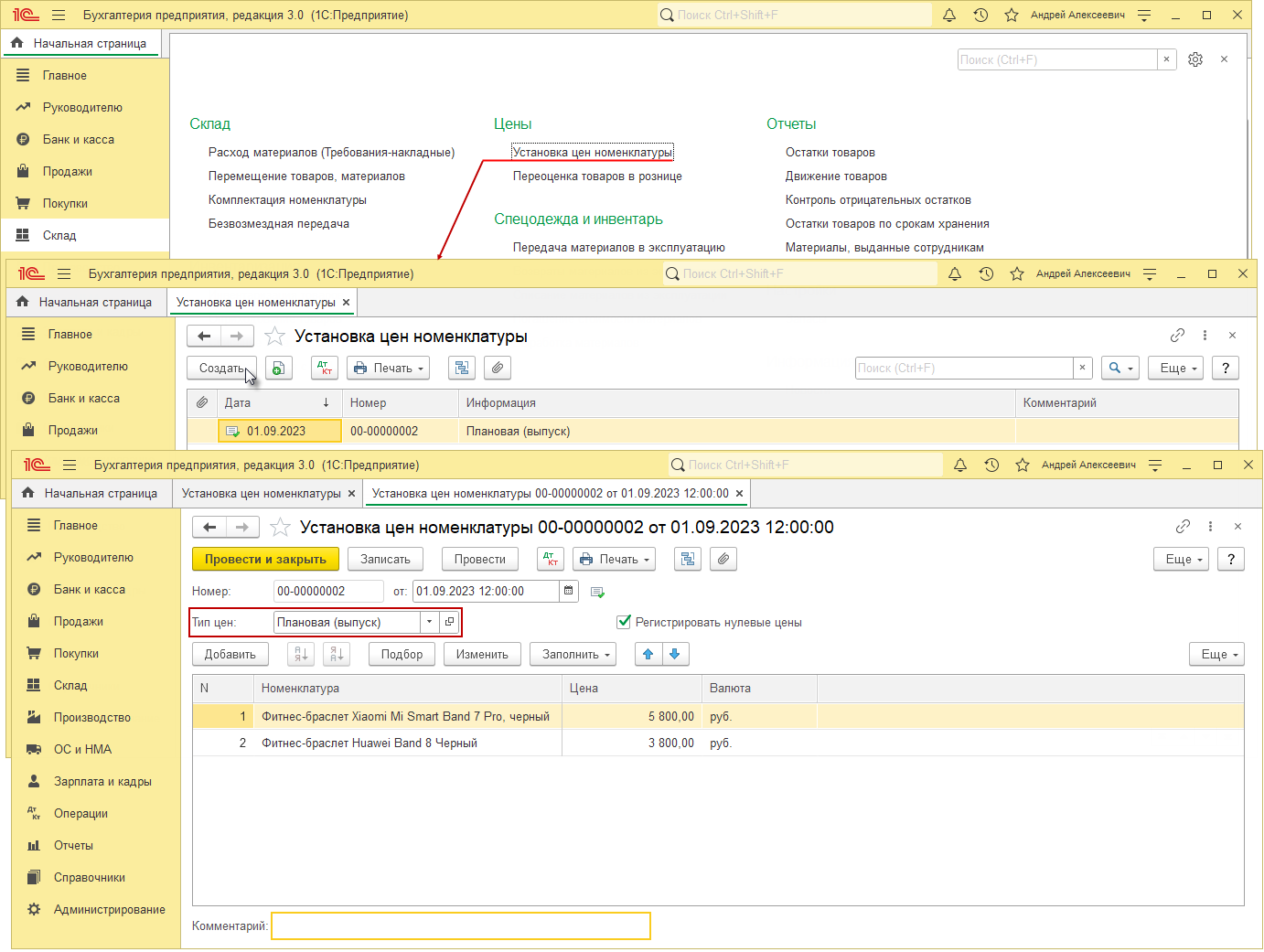 Склад — Установка цен номенклатуры.