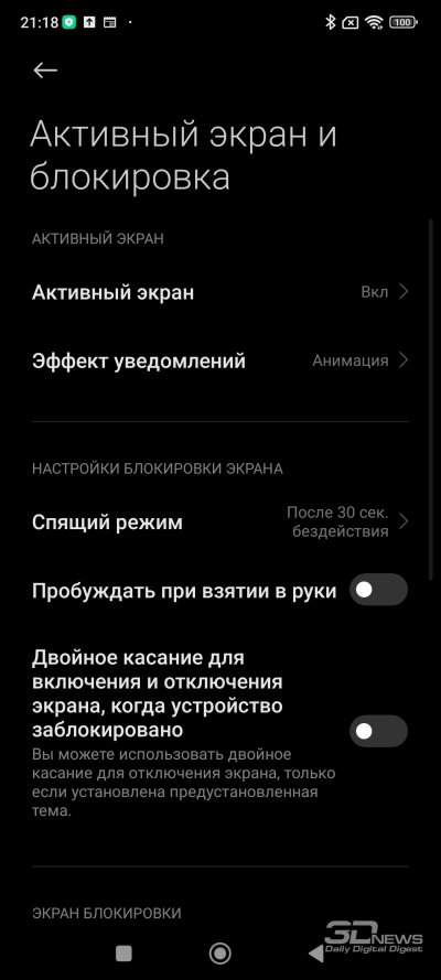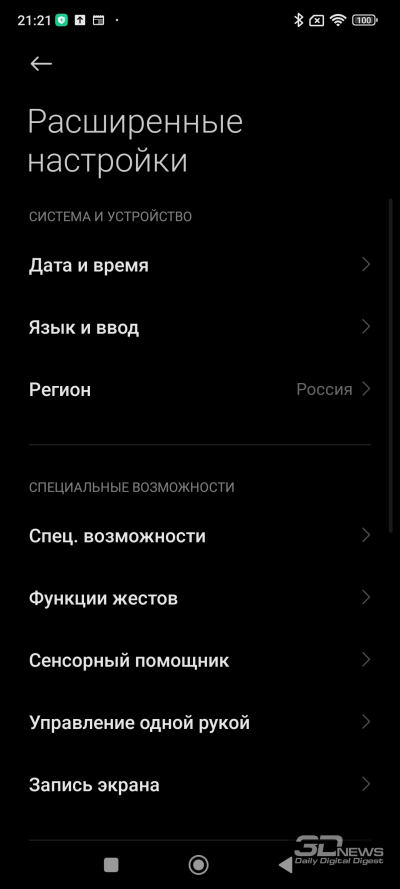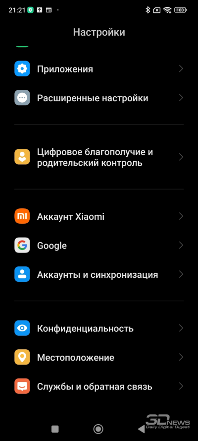 Настройки изображения весьма обширные. Есть специальный режим чтения с теплым тоном экрана, регулировка шрифтов, темный режим, даже специальные параметры для работы с VR. Доступна и регулировка цветопередачи: есть режим, в котором цвета автоматически подстраиваются под отображаемый контент (он назван «ярким»), режим насыщенных цветов и стандартный режим (и да, он опять зовется «по умолчанию», хотя на самом деле по умолчанию выставлен яркий режим). В любом режиме есть возможность вручную отрегулировать цветовой тон по вкусу.