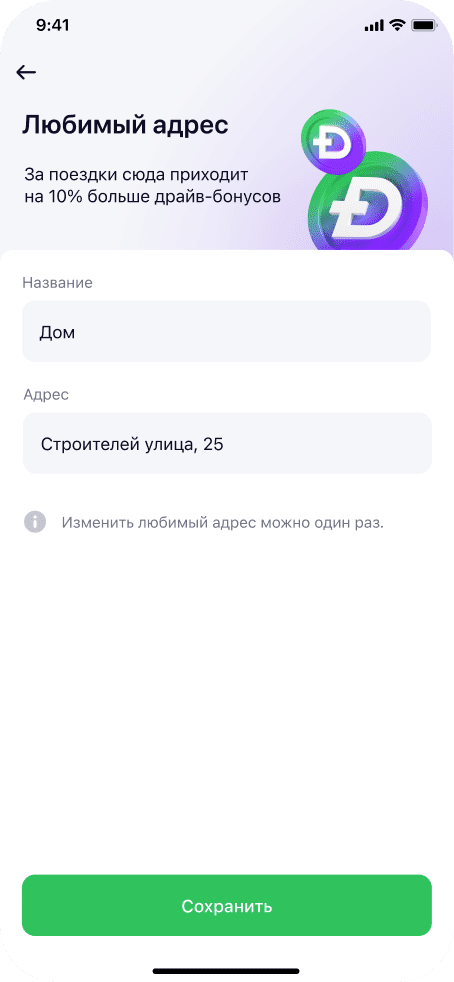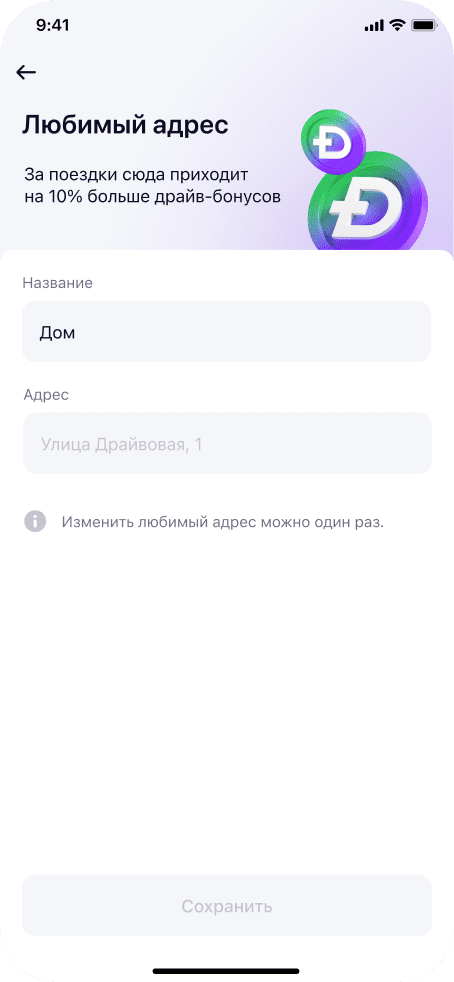 Выберите опцию «Любимый адрес» в приложении Ситидрайв, и поездки, например, домой, на работу или к бабушке станут выгоднее. Ведь за них будет начисляться повышенный кешбэк!